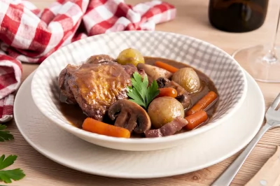 El coq au vin es una especialidad francesa exquisita que hoy en día se suele hacer con pollo. La palabra francesa coq significa gallo, así que es de…