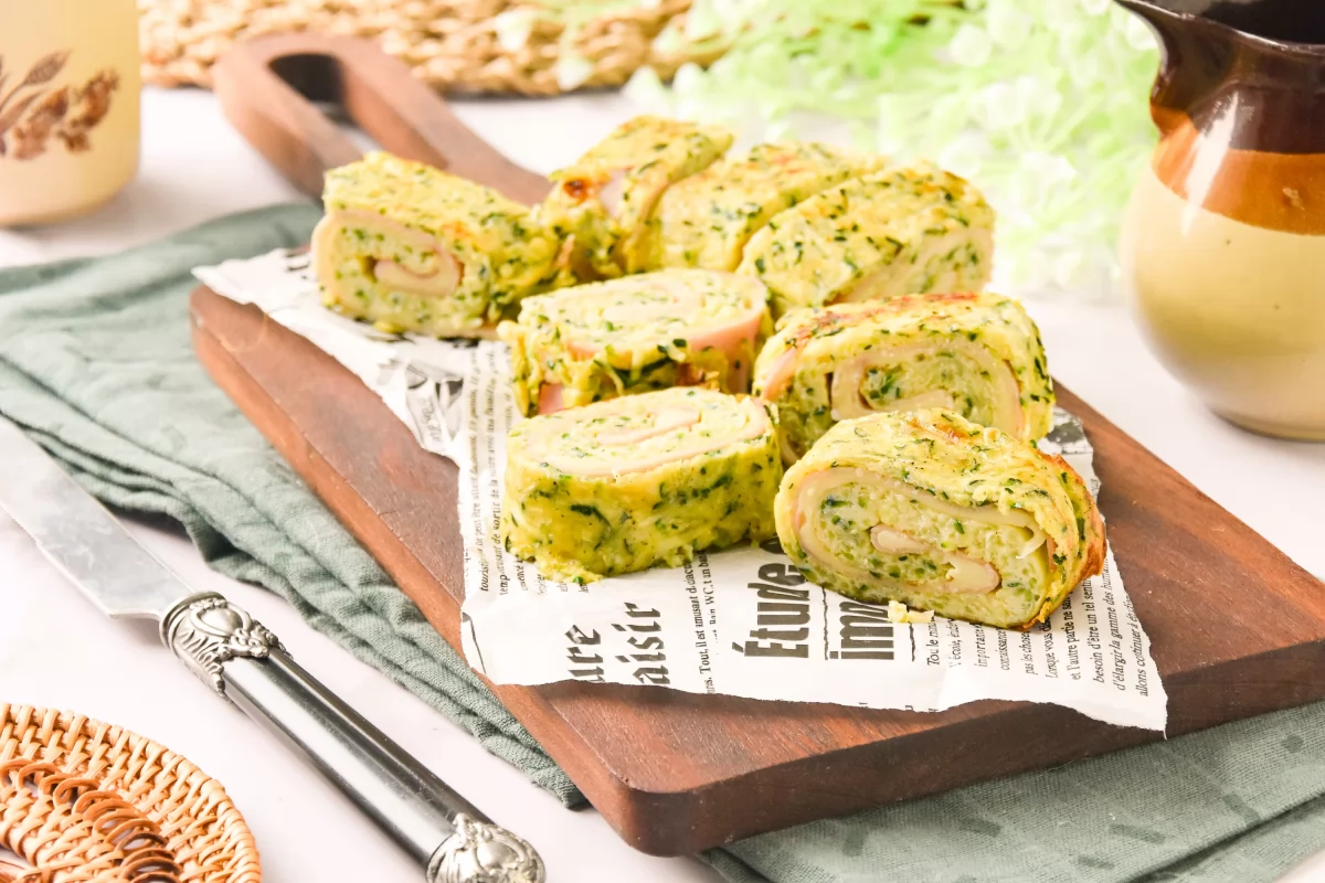 El rollo de calabacín relleno de jamón y queso es muy fácil de hacer y realmente vistosa. Para su elaboración, básicamente tenemos que mezclar el calabacín rallado con los huevos, hornear la mezcla con forma cuadrada, rellenarla con el jamón y queso y hornear de nuevo para que el queso quede fundido en su interior. ¡El resultado es una delicia!
